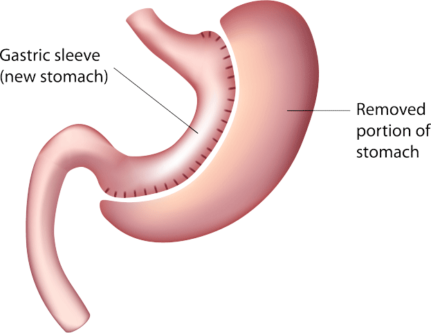 • Removal of 75–80% of the stomach, creating a sleeve shape