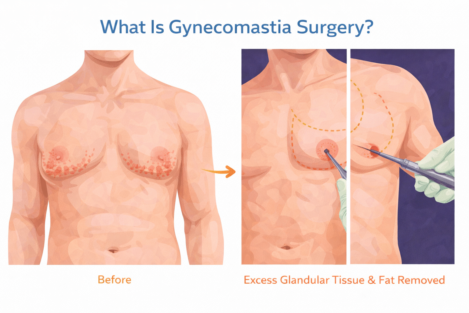 Gynecomastia surgery, also known as male breast reduction, is a procedure designed to remove excess breast tissue and fat in men. It restores a flatter, firmer, and more masculine chest appearance while improving confidence and comfort.